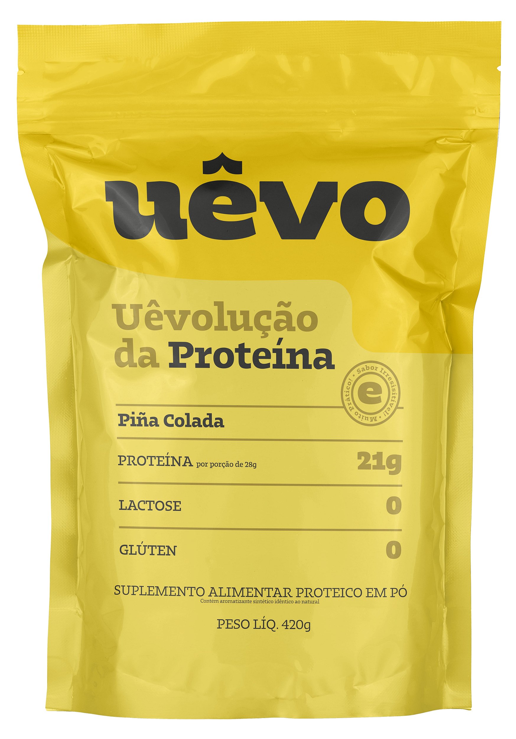 A proteína Uêvo sabor ? chocolate entrega nutrição completa com sabor intenso e textura cremosa. São 20g de proteína por porção, em uma fórmula de fácil digestão e alto aproveitamento pelo corpo.